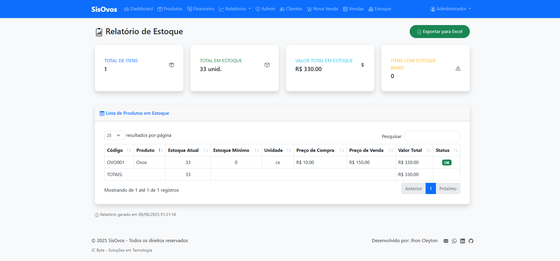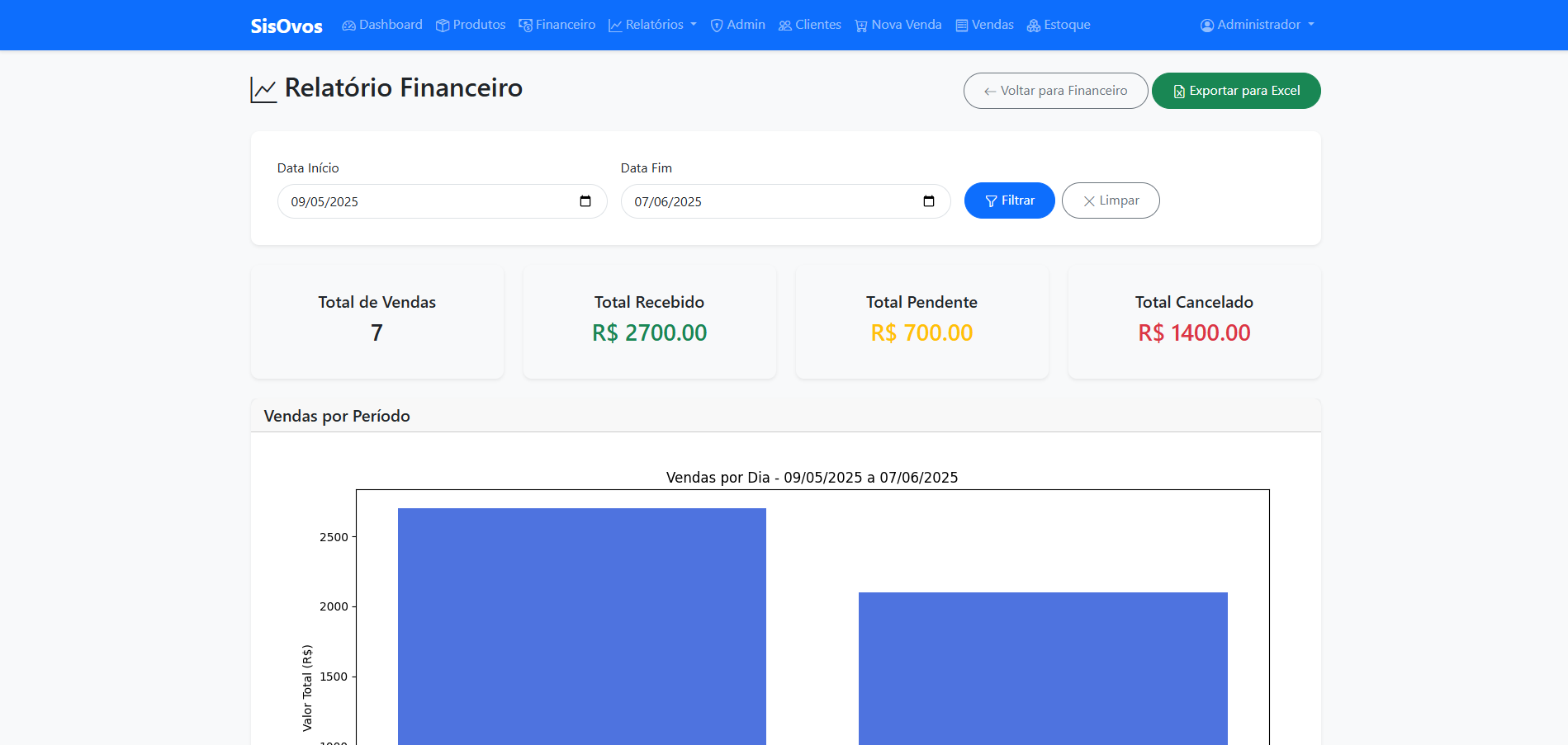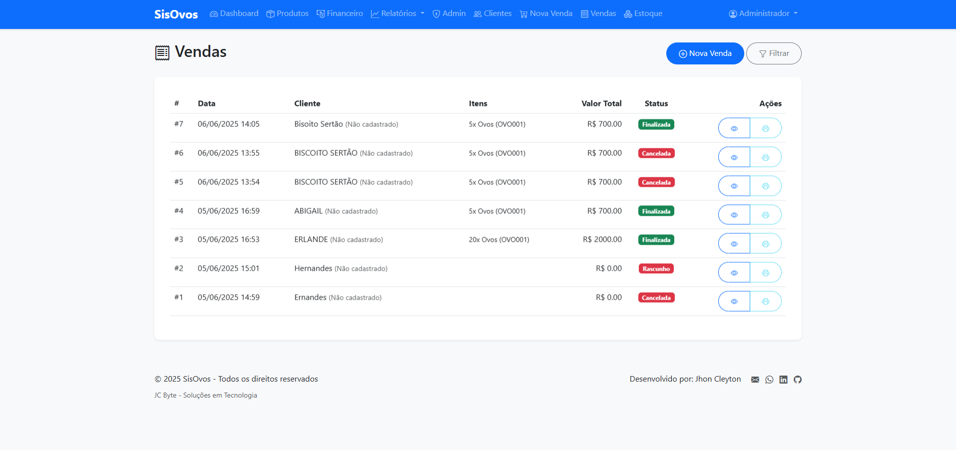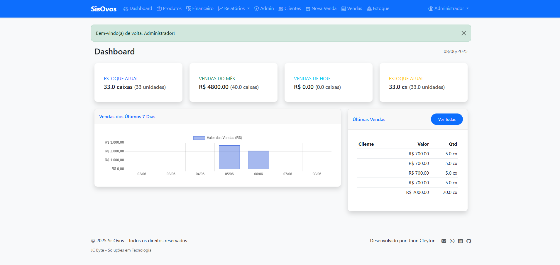 Complete web system for managing egg sales, developed with Flask, offering total control over inventory, sales, customers and staff through an intuitive and responsive interface.