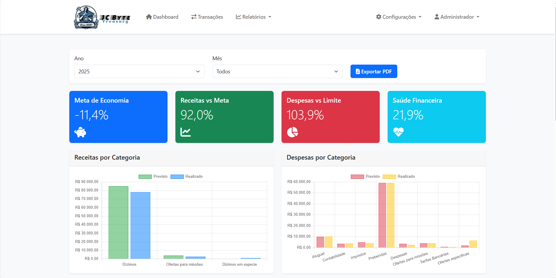 Professional financial management and treasury system developed to improve control and management of financial resources. Designed especially for churches and religious organizations, it offers a complete solution for managing days, offerings and expenses, as well as transparency for members.